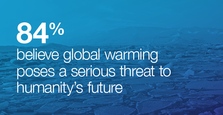- 84% believe global warming poses a serious threat to humanity’s future